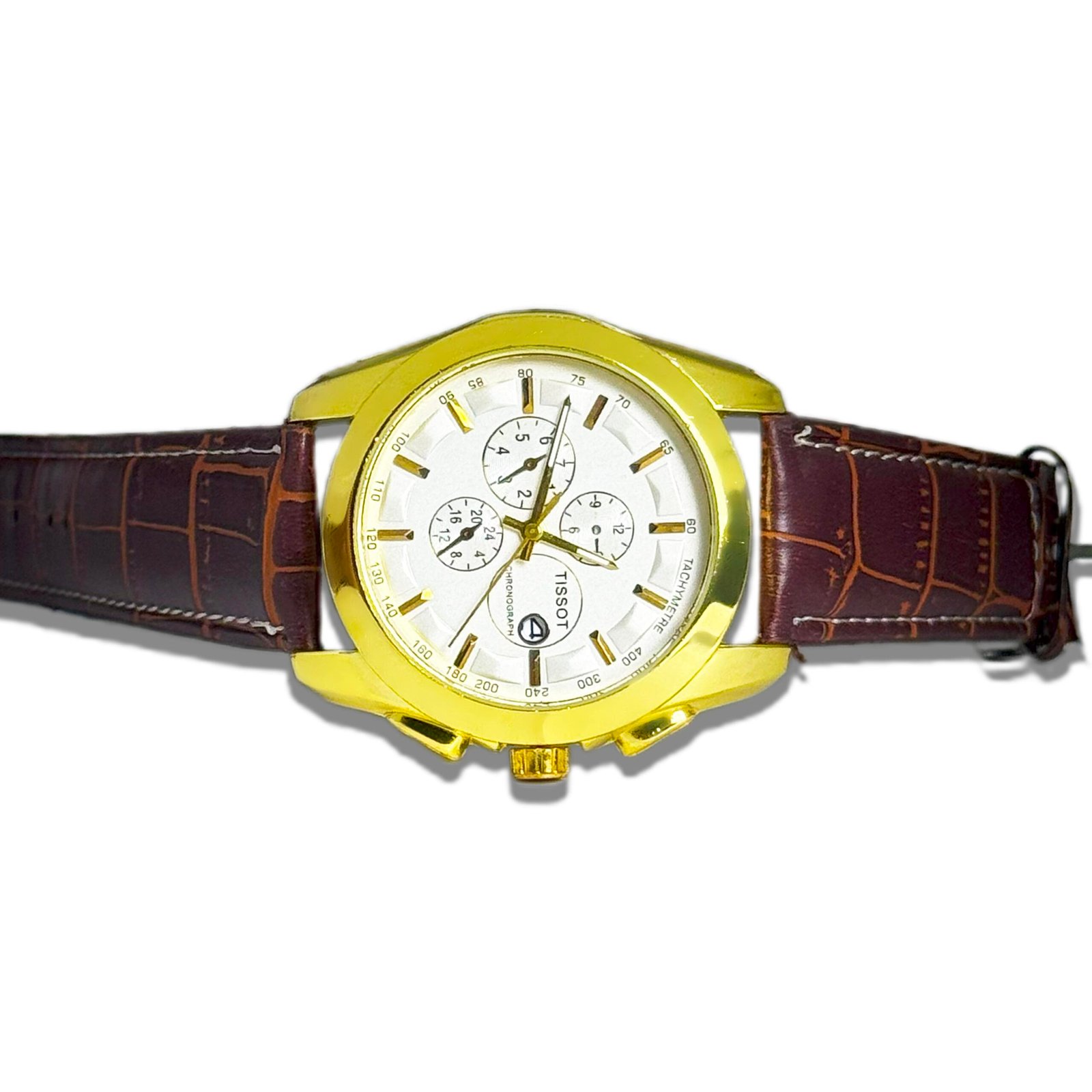 Classic Gold Dial Watch with Leather Straps – Timeless & Elegant