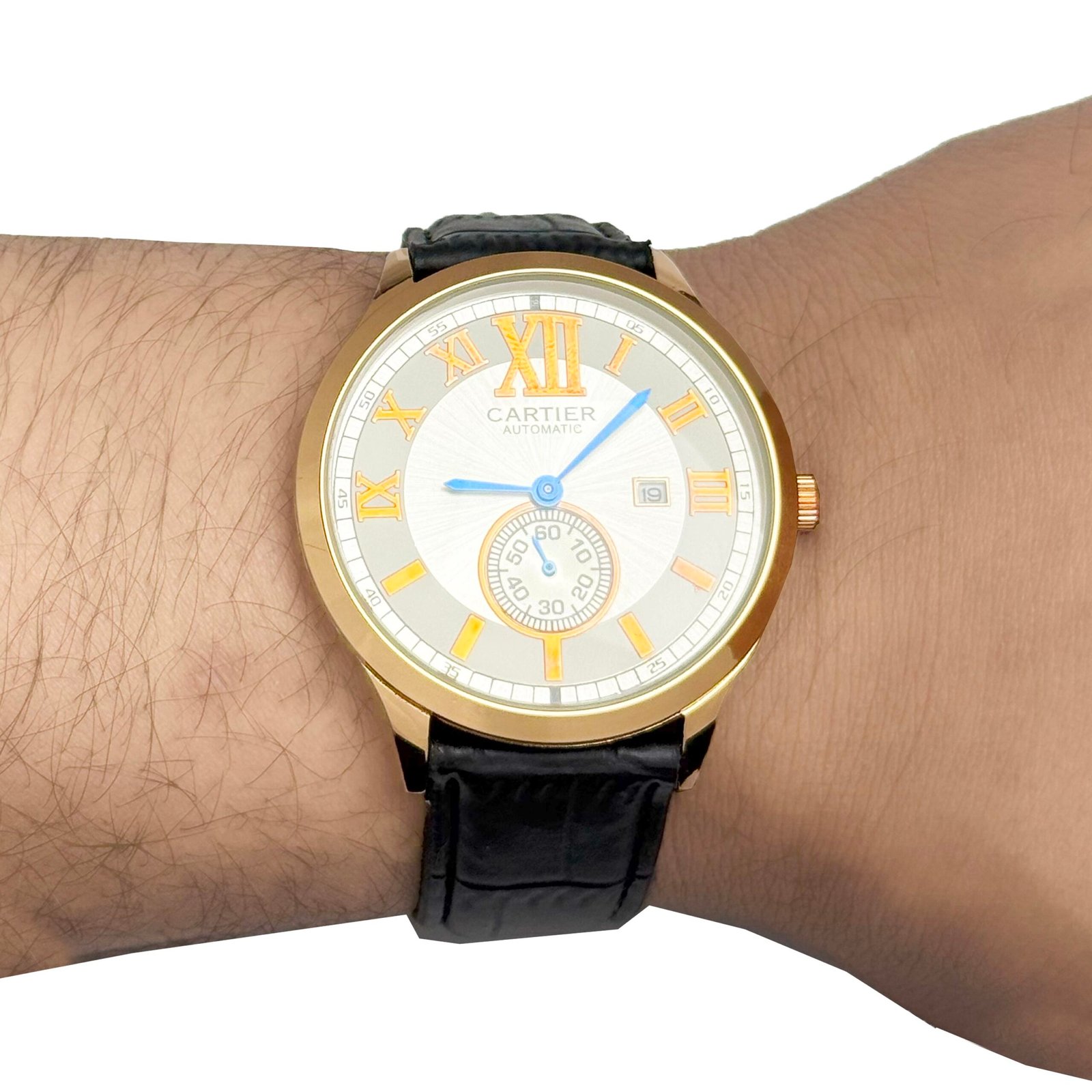 Sleek Design: Bold yet refined markers and hands for a modern look with a classic twist.