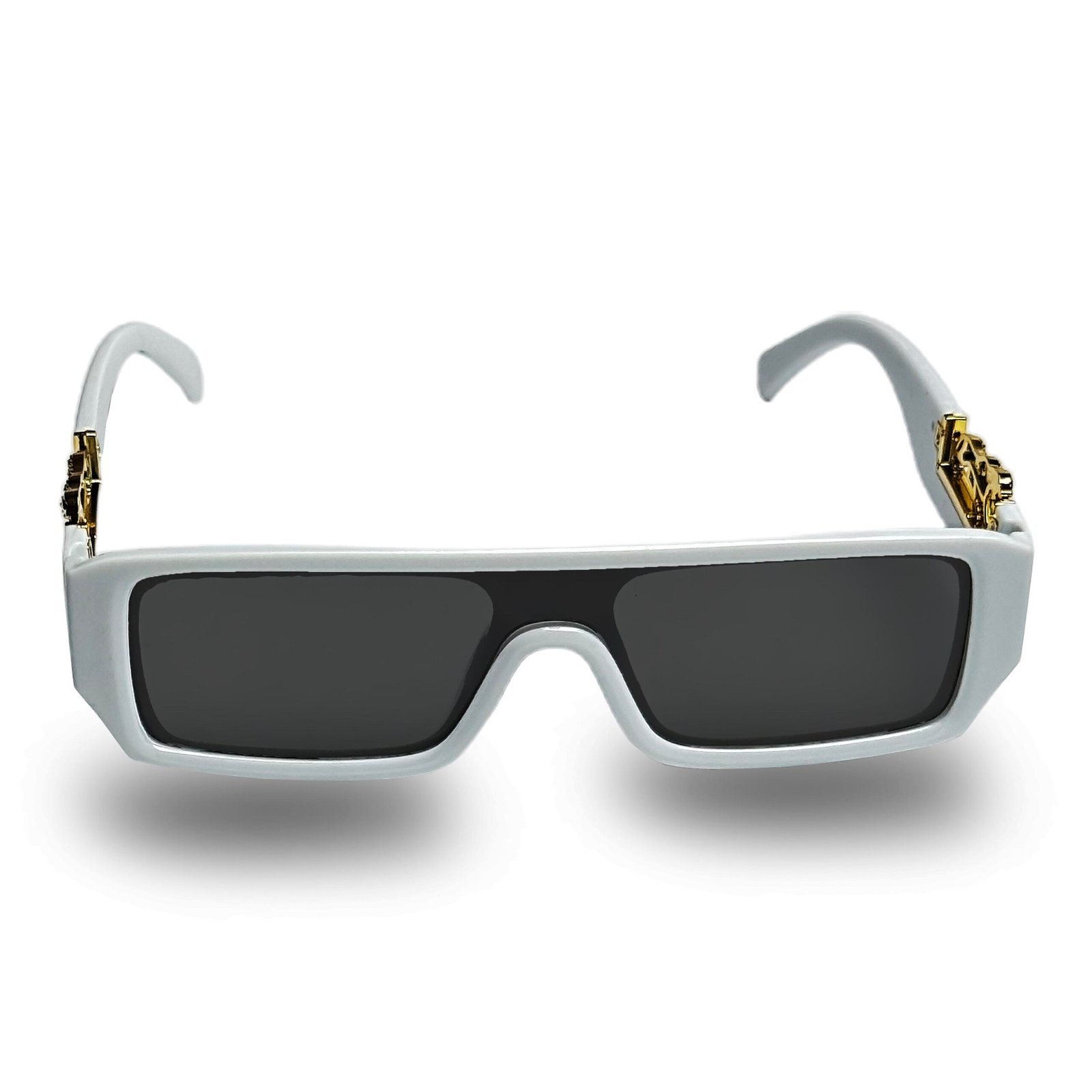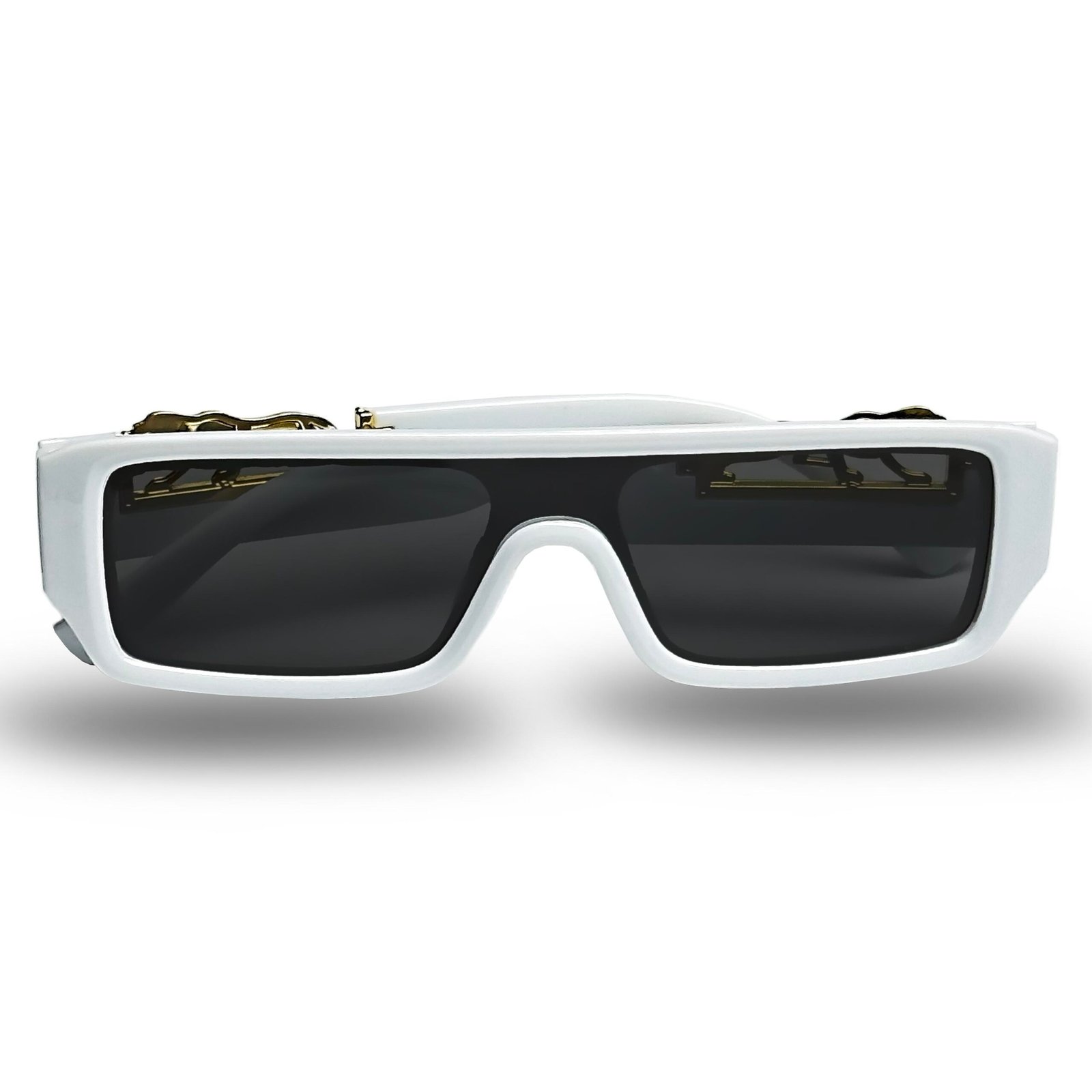 Mini Square White Frame with Golden Cut & Black Lenses – Chic Luxury in Every Detail